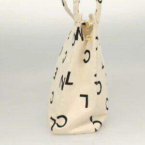 CHANEL Tote Bag Canvas White Gold CC Auth