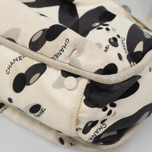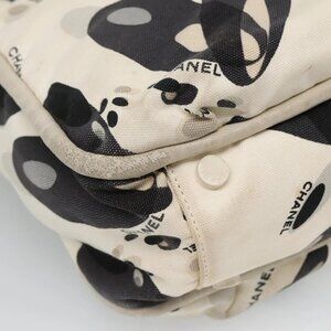 CHANEL Tote Bag Canvas White Silver CC Auth 134829