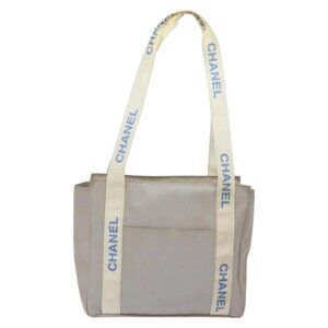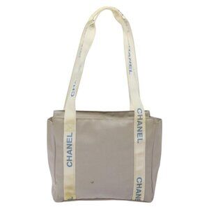 CHANEL Tote Bag PVC Canvas Greige Silver CC Auth bs26664