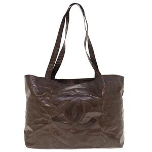 CHANEL Tote Bag Patent leather Brown CC Auth