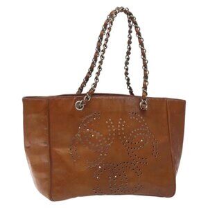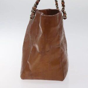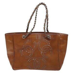 CHANEL Trip Luco co Shoulder Bag Enamel Brown Silver CC Auth bs27076