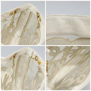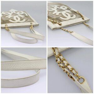 CHANEL Triple Coco Chain Tote Bag Vinyl Leather White Gold CC Auth bs23423