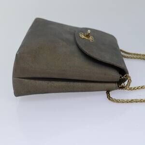 CHANEL Turn Lock Chain Hand Bag Suede Gold Tone CC