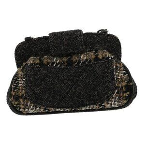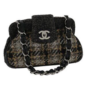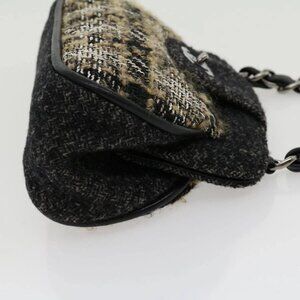 CHANEL Turn Lock Chain Shoulder Bag Wool Gray CC Auth 30734AV
