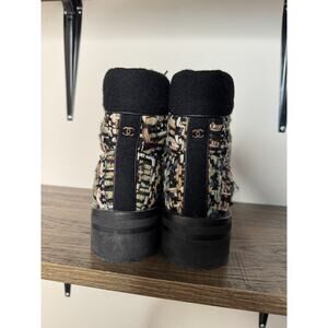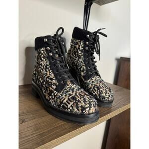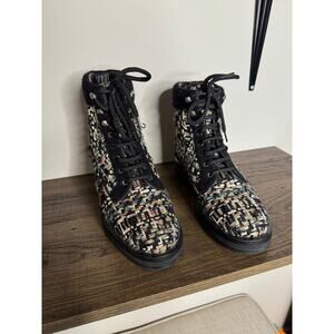 CHANEL Tweed Lace Up Combat boots shoes size 36.5
