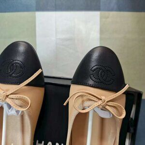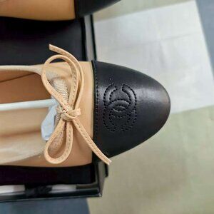 CHANEL Two-Tone Beige and Black Flats