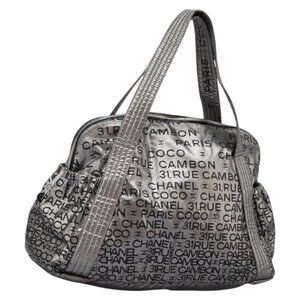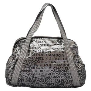 CHANEL Unlimited Hand Bag Nylon Silver CC Auth