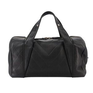 CHANEL V Stitch Hand Bag Leather Black Silver CC Auth hk1897V