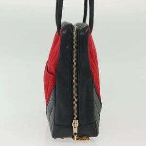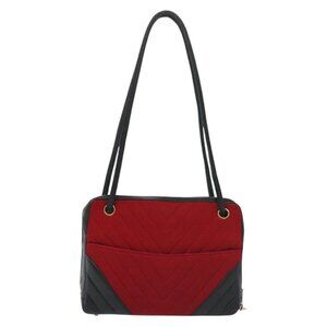 CHANEL V Stitch Shoulder Bag Cotton Red Gold CC Auth 140715