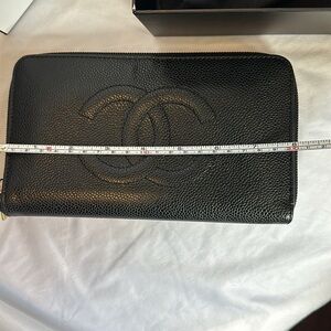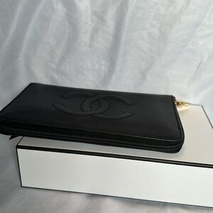 CHANEL VINTAGE 2000 CC BLACK CAVIAR LONG ZIPPY WALLET/GOLD HRDWR GOOD COND/ITALY