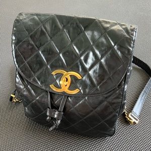 100% AUTHENTIC Chanel Quilted matelasse leather vintage 24k gold CC patent leather backpack