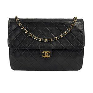 CHANEL - VTG CC Logo Old Medium Black Matelasse Quilted Shoulder Bag