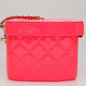 CHANEL Vanity Cosmetic Pouch Enamel Pink CC Auth