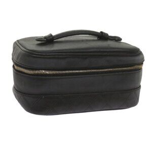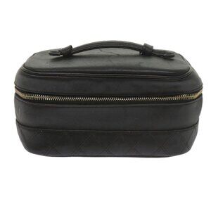 CHANEL Vanity Cosmetic Pouch Leather Black CC Auth