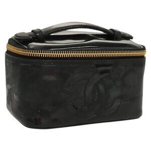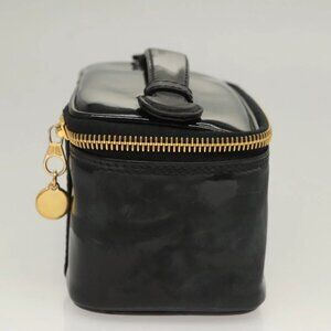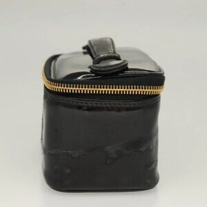 CHANEL Vanity Cosmetic Pouch Patent leather Black Gold CC