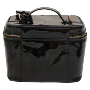 CHANEL Vanity Hand Bag Enamel 2way Black Gold CC Auth 130982