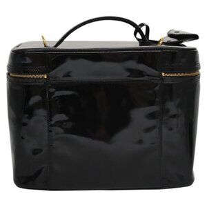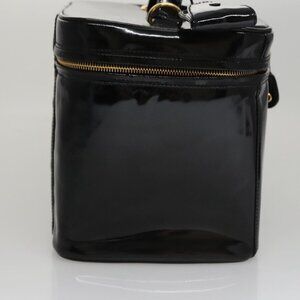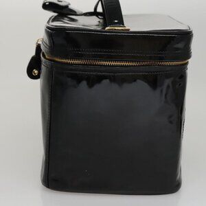 CHANEL Vanity Hand Bag Patent leather 2way Black Gold CC Auth bs21681V