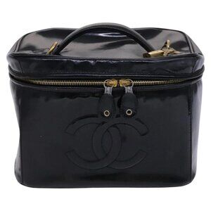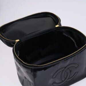 CHANEL Vanity Pouch Patent leather 2way Black Gold CC Auth