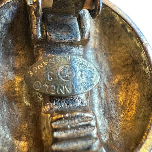 CHANEL Vintage 1988 CC Logos Button Motif Bijou Stone Earrings Clip-On 23
