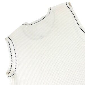 CHANEL Vintage 96P CC Mark Logo Knit Tank Top #42 White Black Cotton [106470]