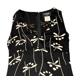 CHANEL Vintage 98P CC Mark Logo Dress Sleeveless #38 Black White Silk [106319]