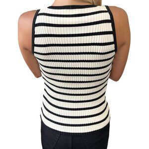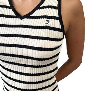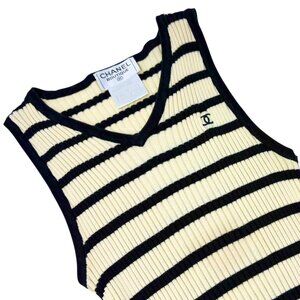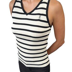 CHANEL Vintage 98P CC Mark Logo Striped Knit Tank Top #38 Cream Black [106483]