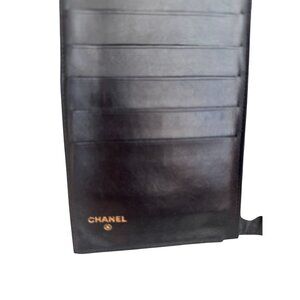 CHANEL Vintage Black Lambskin Logo Bi Fold Long Wallet