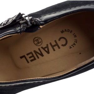 Chanel Black Suede and Leather CC Pointed Toe Ankle Booties Size 37