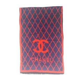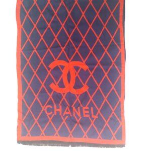CHANEL Vintage Blue & Red Reversible Window Print Wrap Shawl Scarf w/ CC Logo