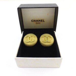 This is a set of authentic CHANEL Earrings Vintage CC 24K Gold Plated Medallion Logo Button Clip-On Earrings. In great vintage condition from the 1994 Collection, these make a statement piece for any CHANEL collector!
