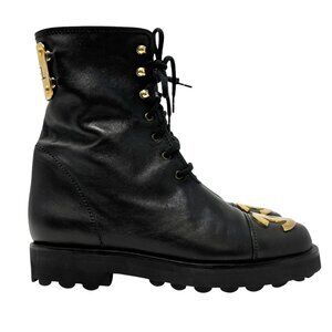 CHANEL Vintage CC Logo Lace-up Ankle Boots #36.5 Short Boots Black Gold [105170]