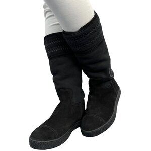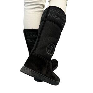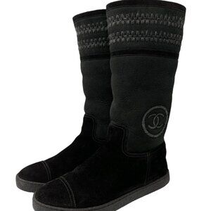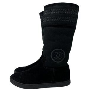 CHANEL Vintage CC Logo Mid Calf Boots #39 US 7.5 Boa Boots Black Suede [104028]