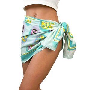 CHANEL Vintage CC Mark Logo Scarf Wrap Mint Green Multicolor Cotton [106410]