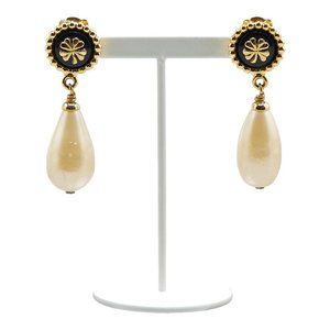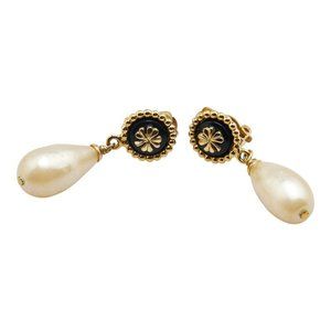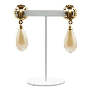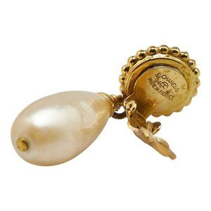 Used CHANEL Vintage Clover Teardrop Earrings, Swing, Gold Plated, Faux Pearl, Women's (SKU: GZl1bmrg)
