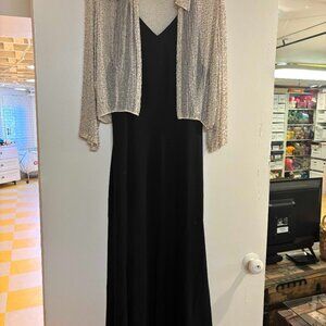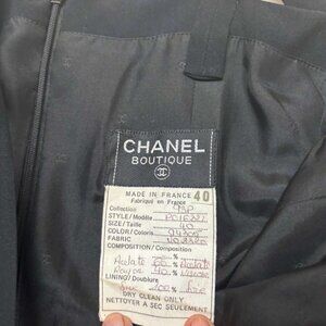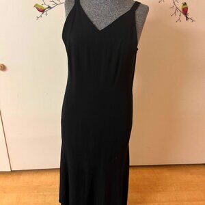 CHANEL Vintage ELegant LBD Long Dress Black Wool Logo Silk Lined 40