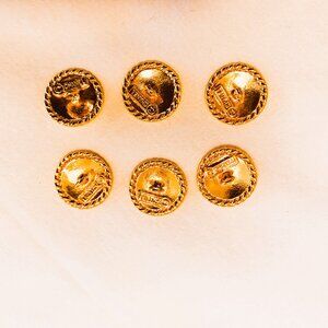 CHANEL Vintage Gold Buttons (Set of 6) – Quilted + Rope Trim – Stamped,