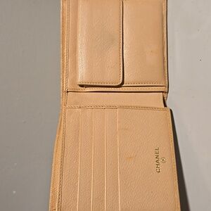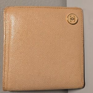 Sophisticated CHANEL wallet in beige leather. Compact and stylish for daily use.