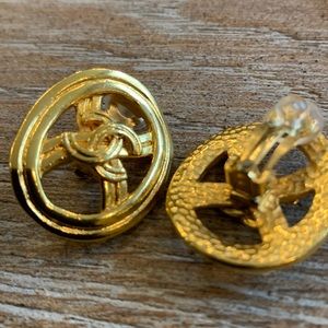 Gorgeous CHANEL Oval Gold Tone Clip On Earrings From 1990’s with Cushion Backs