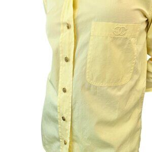 CHANEL Vintage PO4946 CC Mark Logo Shirt Top #36 Button Up Yellow Gold [105087]