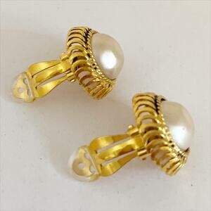 vintage chanel, chanel earrings, pearl earrings, chanel clip on, faux pearl, faux pearl earrings, gold clip on