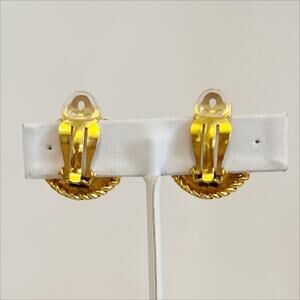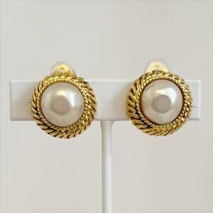 CHANEL Vintage Round Earrings Faux Pearl Twist Rope Gold Plated Clip On