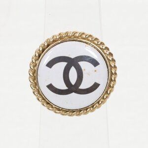 CHANEL WHITE WITH ROPE EDGE BLACK CC BUTTON BROOCHE 2008 COLLECTION