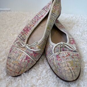 CHANEL Watercolor Plaid Canvas Logo Ballet Flats 38.5