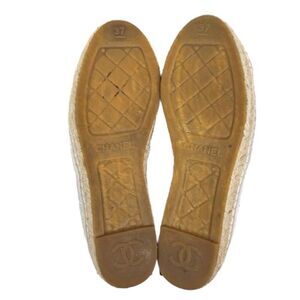 CHANEL White Woven Interlocking CC Logo Sequin Flat Espadrilles Size EU37