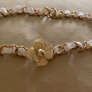 CHANEL White and Gold Chain Camellia Flower Belt. Great Condition. Size S.