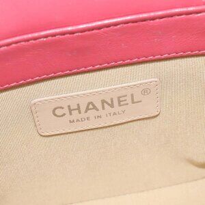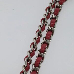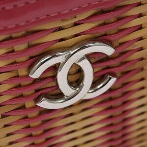 CHANEL Wicker Vanity Chain Shoulder Bag Rattan 2way Pink Silver CC Auth