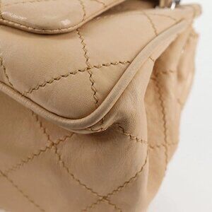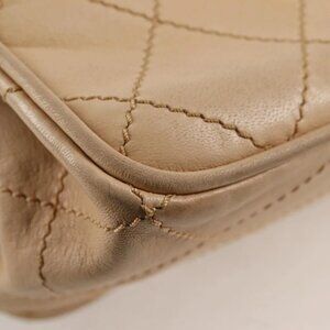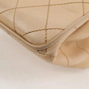 CHANEL Wild Stitch Chain Shoulder Bag Lamb Skin Beige Silver CC Auth PP878