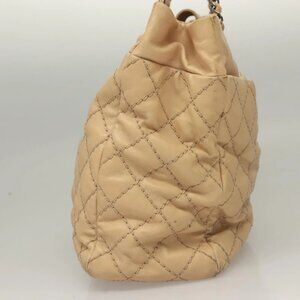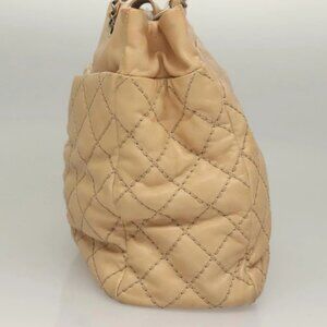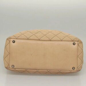 CHANEL Wild Stitch Chain Shoulder Bag Leather Beige CC