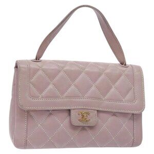 CHANEL Wild Stitch Hand Bag Leather Pink Gold CC Auth 128845