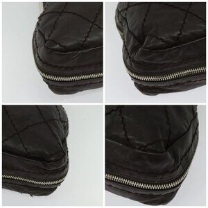 CHANEL Wild Stitch Matelasse Hand Bag Leather Brown Silver CC Auth 135451